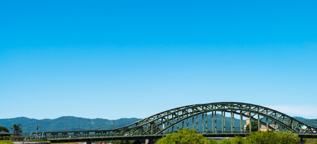 旭川市内中心部、石狩川に架かる旭川のシンボルが「旭橋(あさひばし)」。